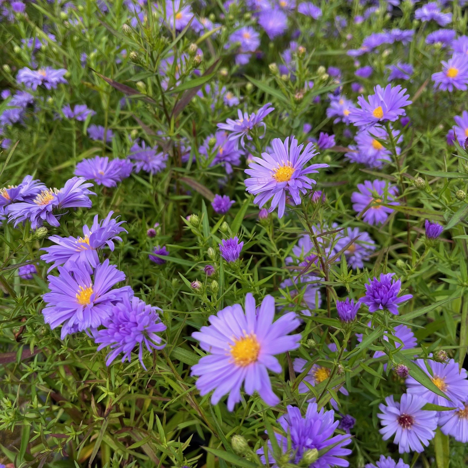 Een lage, compacte herfstaster die bloeit in het najaar. De bloemen zijn dubbel en paars-lila van kleur . Een echte vlinder- en bijenplant.