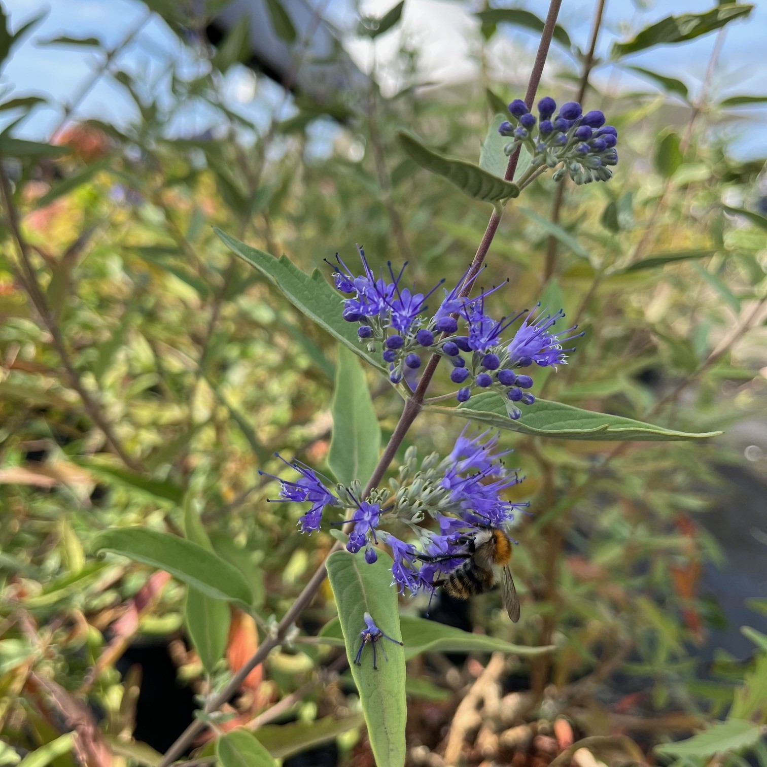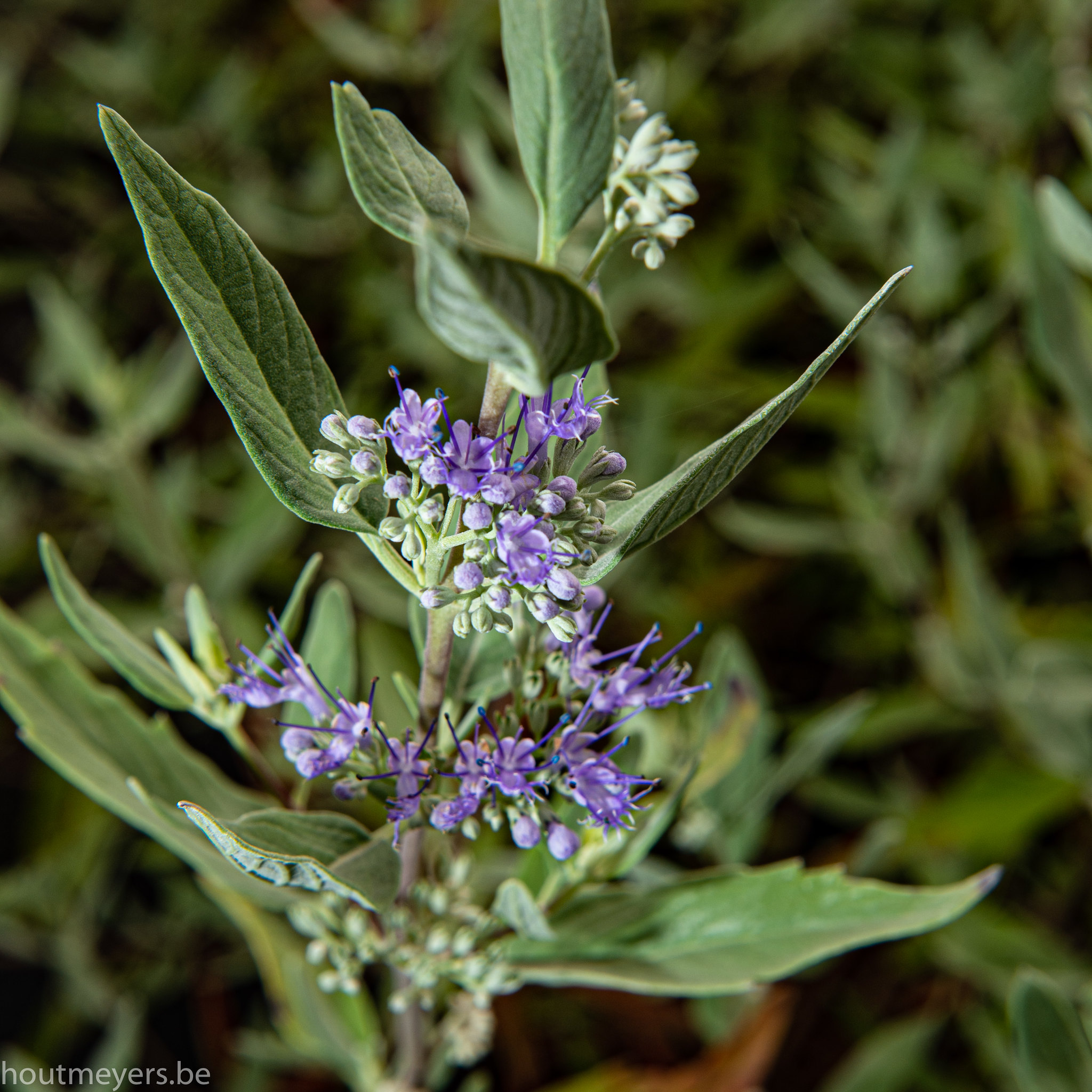 Een traag groeiende struik met grijsachtige blaadjes. Het is een zeer rijk bloeiend plantje met lavendelkleurige bloemen vanaf augustus.