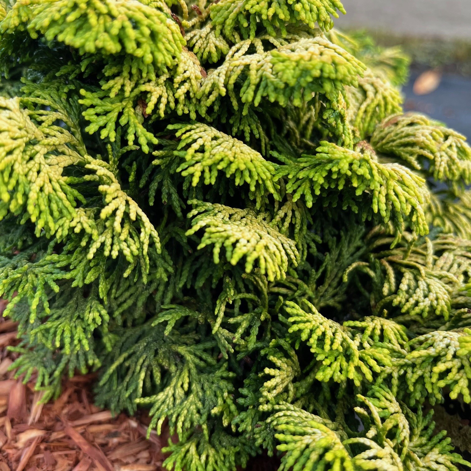 Geelkleurige Hinoki cipres. Verkiest een plaats in de halfschaduw, hij kleurt dan ook groener. Traaggroeiend.