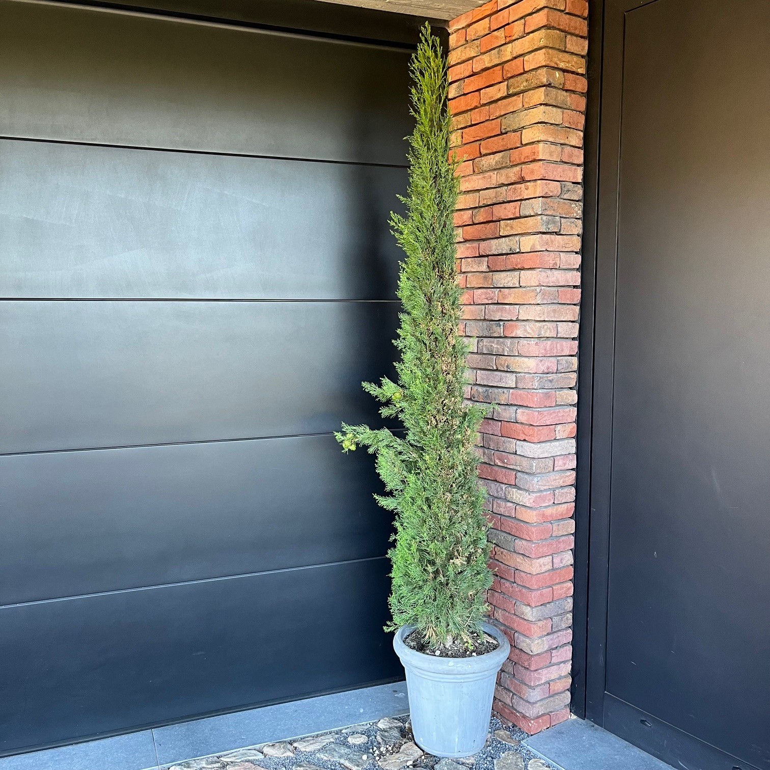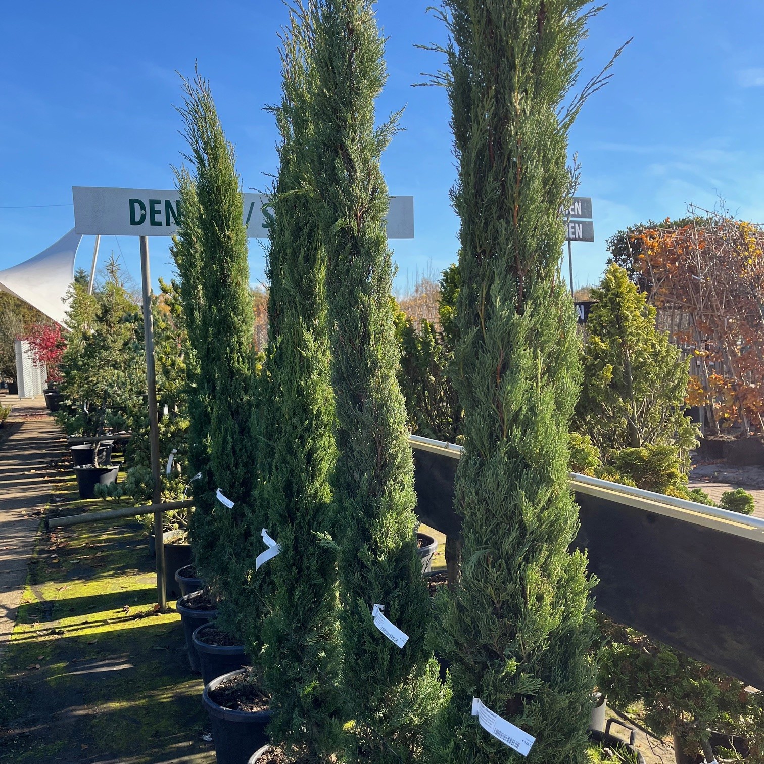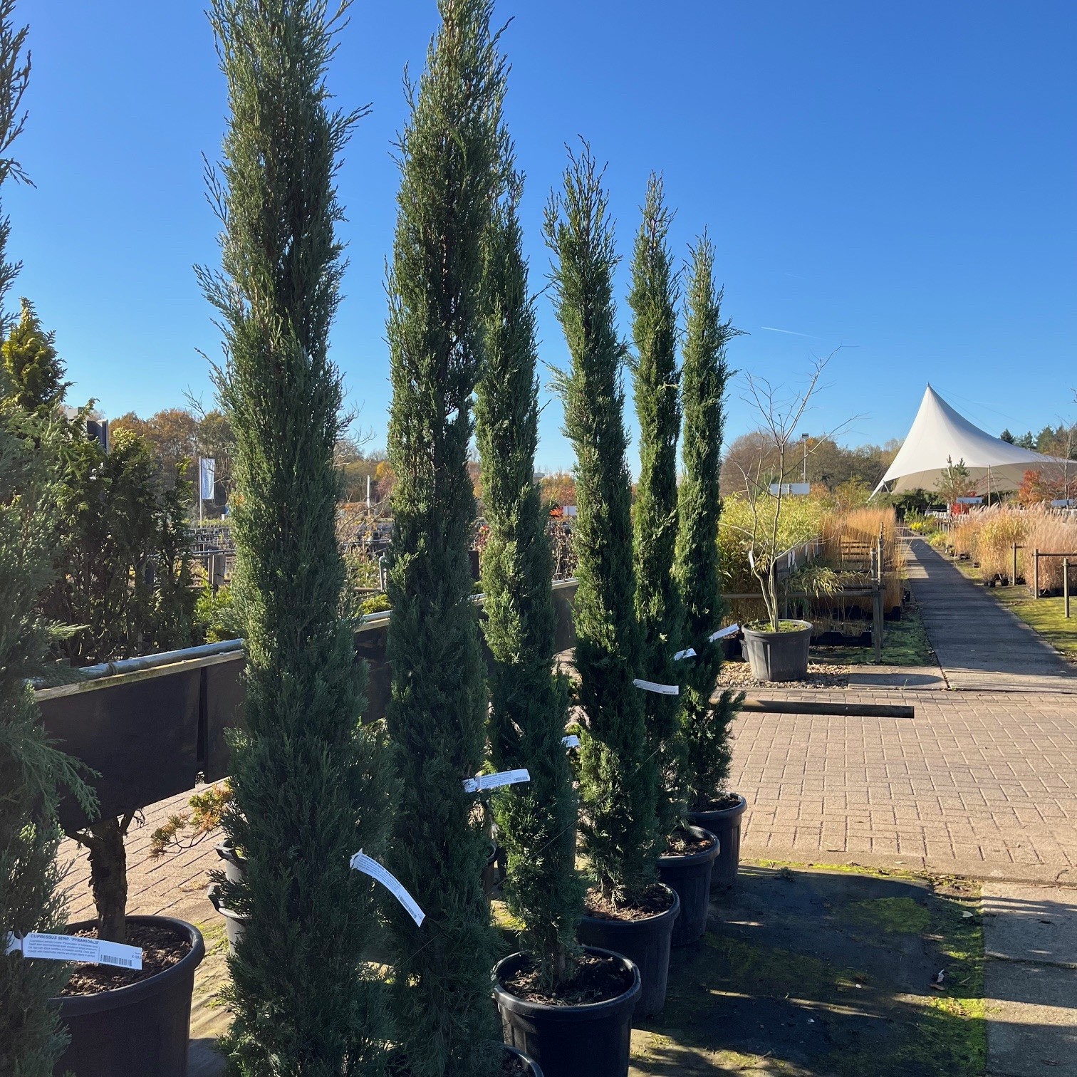 Cupressus sempervirens ‘Pyramidalis’ of Italiaanse cipres heeft een kenmerkende zeer smalle en lange groeivorm die we kennen uit het Toscaanse landschap. De top van deze conifeer is meestal puntig. Deze plant vraagt een beschutte warme en droge plaats in de tuin. Groenblijvend, tot 5m hoog.