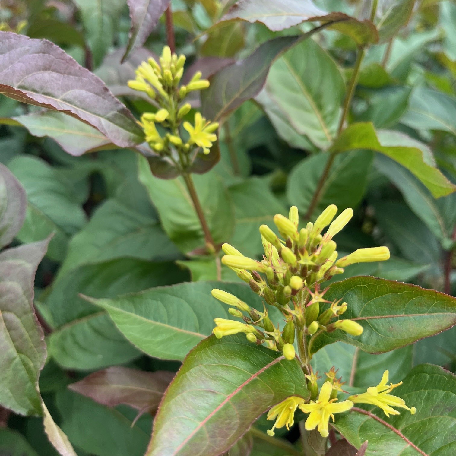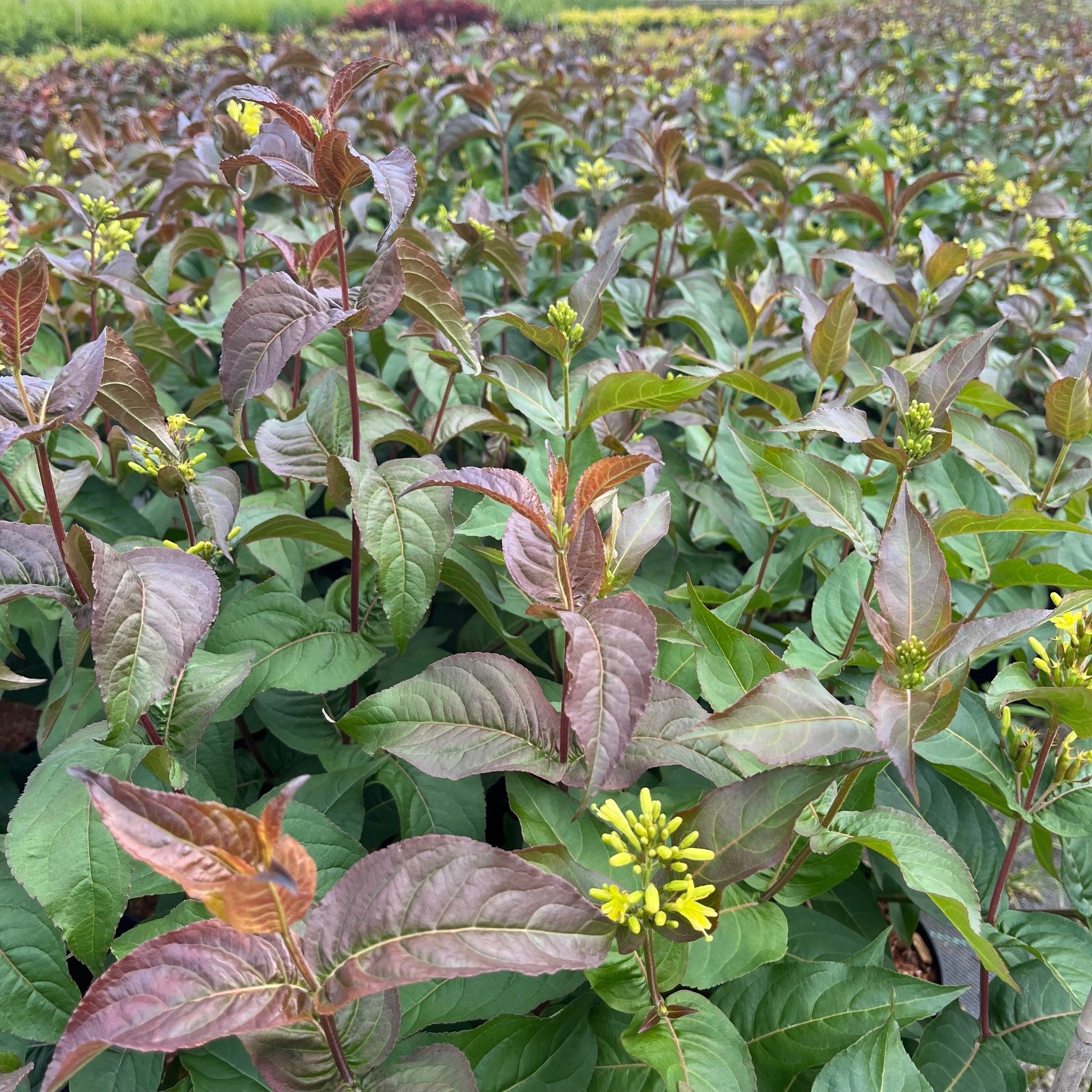 Een prachtige, compact groeiende heester met bladeren die mooi verkleuren in de herfst. De gele bloemen verschijnen vanaf juni tot september en steken mooi af. Het blad is groen met een zweem van rood.