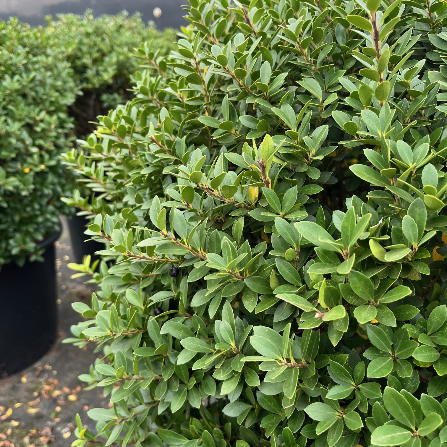 Een zeer goede, bladhoudende, trager groeiende struik met langwerpige, glimmend donkergroene bladeren. Het is een zeer goede plant die weinig eisen stelt aan grond en standplaats. Plant 4 stuks per strekkende meter voor het maken van een haag. Deze plant is ook zeer geschikt om in ‘blok’ te planten of ‘wolken’ te vormen. Erg winterhard. Ook beschikbaar als bolvorm.
