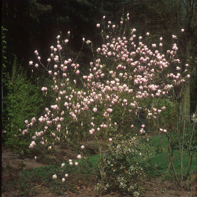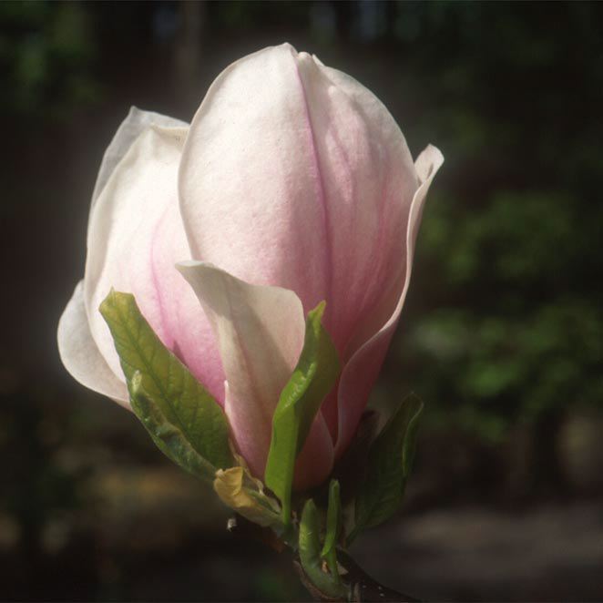 Een snel en groot groeiende struik tot kleine boom met groene, omgekeerd-eironde bladeren. Voor of tijdens de bladontwikkeling verschijnen de grote, opvallende, wit met roze, tulpvormige bloemen. Deze soort groeit best op een humusrijke grond.