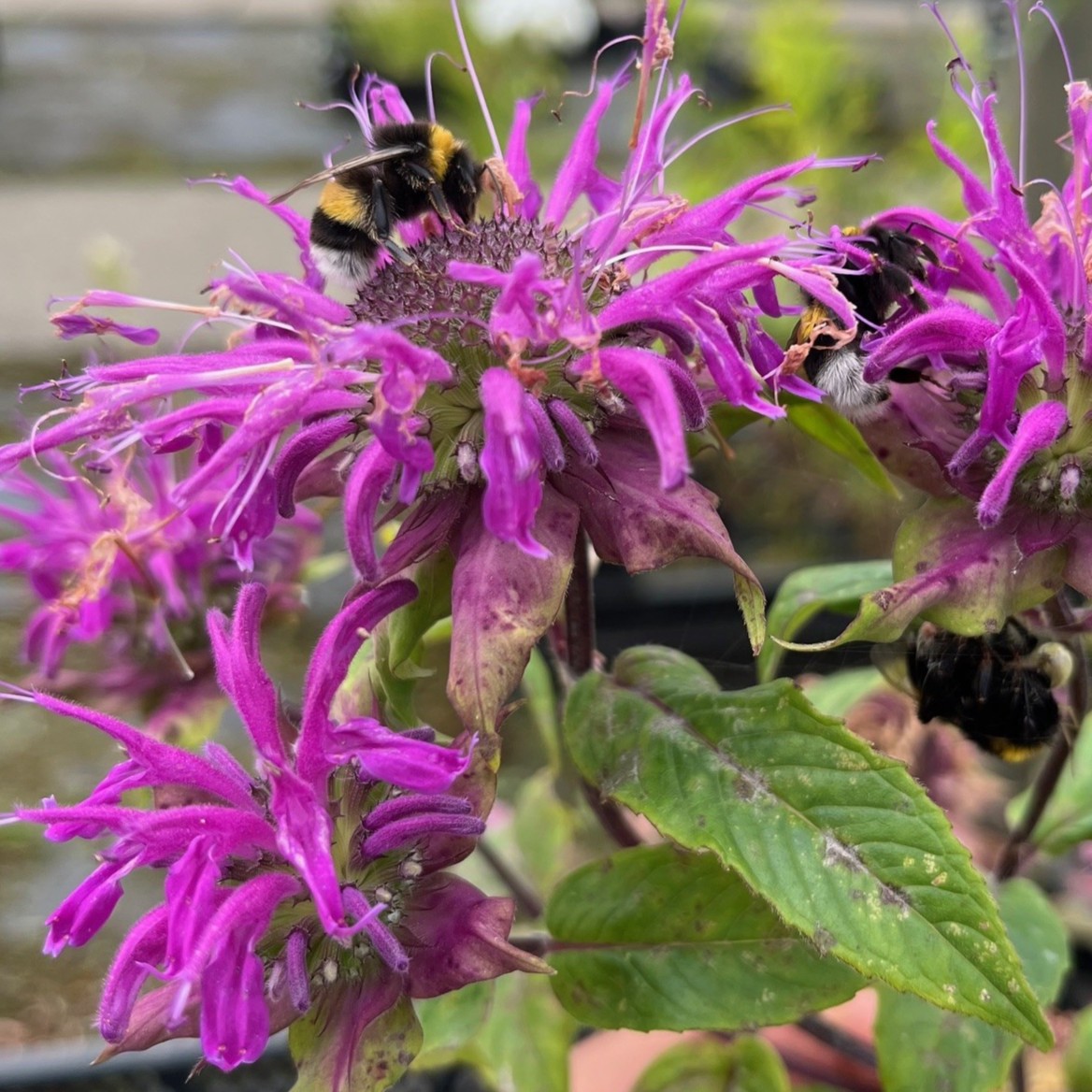 Dit plantje met purperviolette, in kransen staande, tweelippige bloemen bloeit in juli-augustus en bereikt een hoogte van 100 cm. De bladeren zijn groen van kleur, gezaagd, breed ovaal van vorm en kruisgewijs tegenoverstaand. Monarda’s plant je omwille van de rijke en lange bloei. Plant ze op een goede tuingrond. Goede snijbloem.