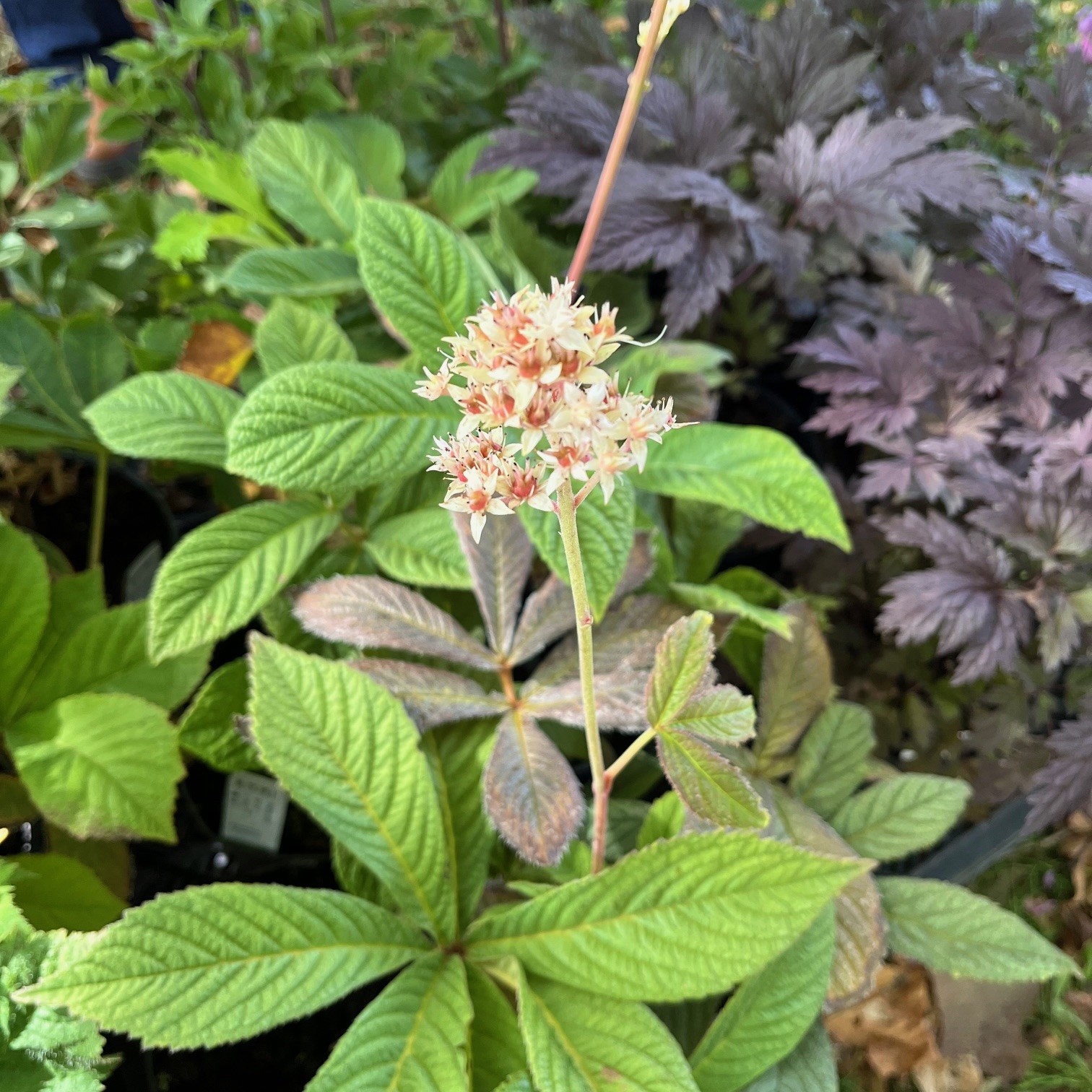 De Rodgersia henrici heeft een groot decoratief blad. De lichtroze bloemen verschijnen in de maand mei/juni De bloemen staan op lange bladstelen. Hoogte : 120 cm.