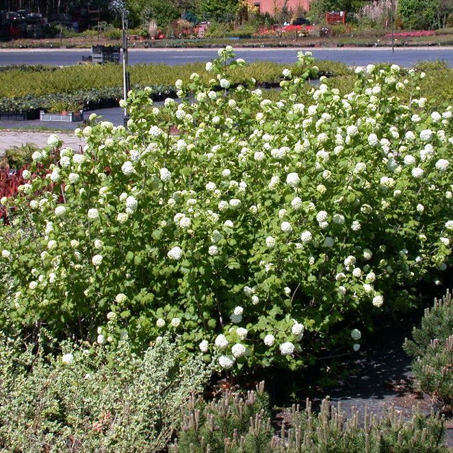 Een breed opgaande, matig groeiende struik met frisgroene, drie- tot vijflobbige bladeren. De witte bloempjes staan verenigd in een bolvormig scherm. De bolvormige bloemen zijn geweldig geurend. Deze soort is echter onderhevig aan bladluis.