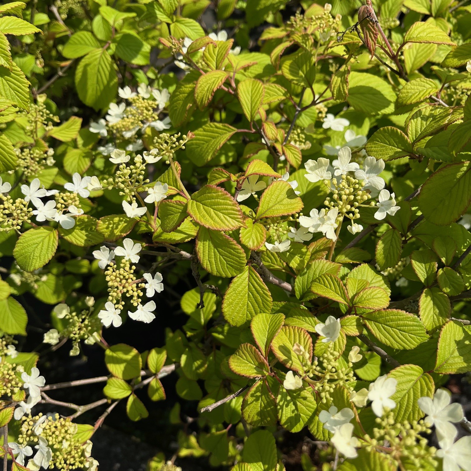 Een traag groeiende struik. In mei-juni verschijnen er witte, vlakke bloemschermen. De bladeren zijn groen van kleur en elliptisch van vorm.
