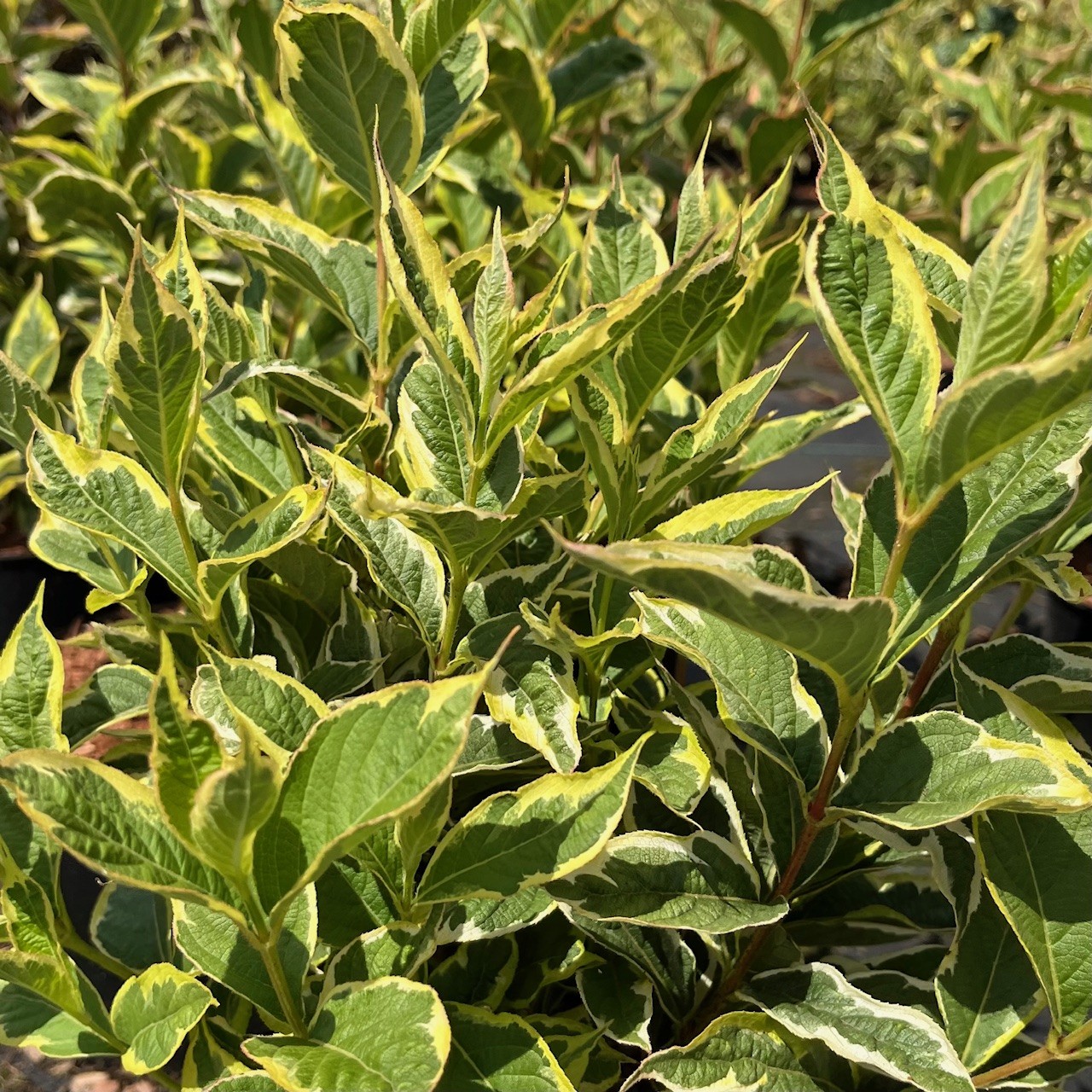 Een gedrongen en matig groeiende, bladverliezende heester tot 1 meter met geelwit gerande, ovale bladeren en lichtroze, trompetvormige bloemen. De bloemen verschijnen vanaf mei. Ze bloeien op sterke takken van vorig seizoen. Een verjongingssnoei na de bloei kan perfect. Verwijderen ook dood en beschadigd hout in het voorjaar.